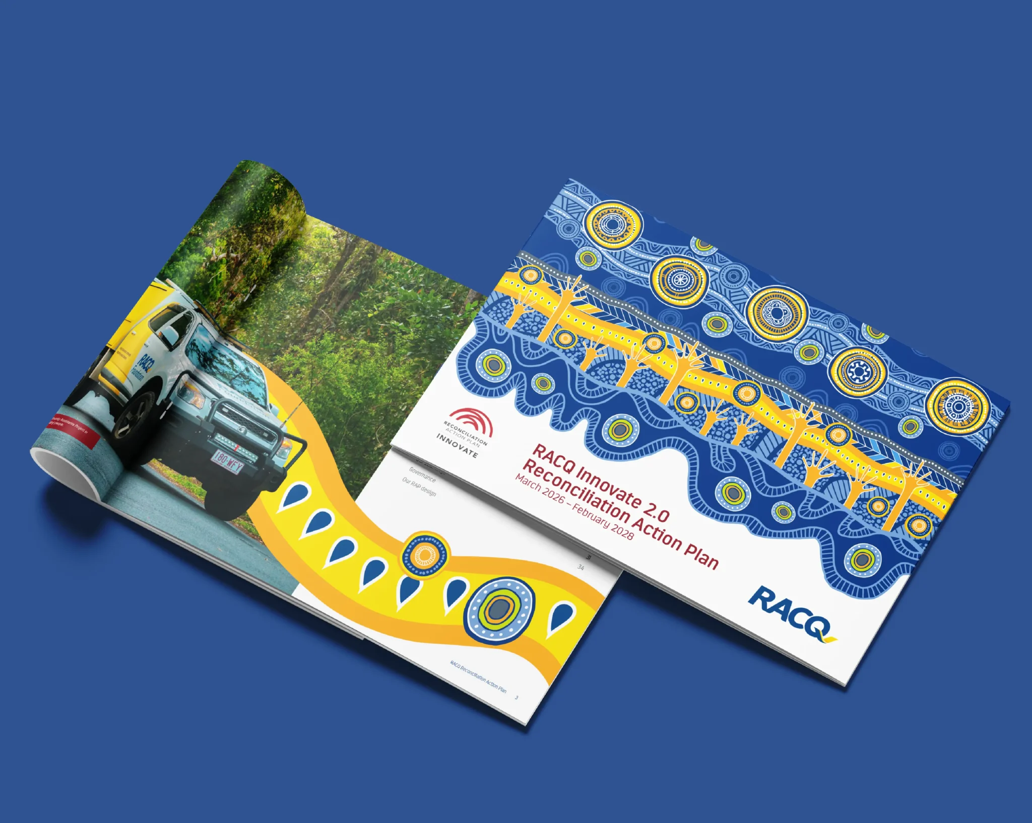 The colour palette blends uses RACQ’s colour palette with the result visual as a seamless integration of cultural storytelling and contemporary corporate design.